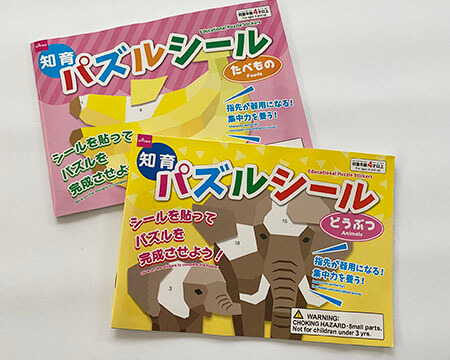 ダイソー 知育パズルシール「知育パズルシール 食べ物」「どうぶつ」(110円)