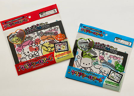 セリアではダイソーで販売されている”ステンドグラス風シールぬりえ”も販売されていますがその他にサンリオキャラクターデザインの”クリアシールアート”も販売されています