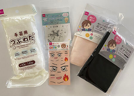 手芸・ハンドメイドコーナーでぬいぐるみの中に入れる綿も販売されているのでこれで材料は集まりました