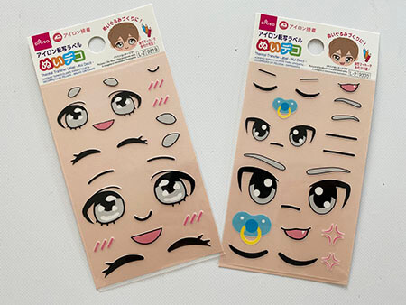 ぬいぐるみ用生地と同じ場所で販売されていました、目、眉、口などがアイロン転写で簡単に素体につける事ができ、油性マーカーで色付けできるのでパーツの色を自分で変更する事が可能なのでより推しに近づける事ができます